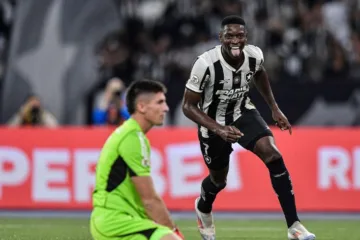Luiz Henrique comemora gol marcado pelo Botafogo (Thiago Ribeiro/AGIF (via AP)