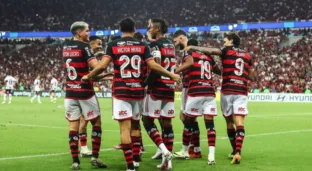 Jogadores do Flamengo comemoram gol (Reprodução/X/Flamengo)