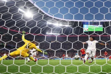 O lance não impactou a Fúria, que buscou o empate na sequência com Yamal. O jovem espanhol recebeu a pelota na etrada da área, finalizando no ângulo de Maignan. Golaço!