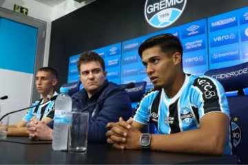 Grêmio anunciou Monsalve e Arezo em coletiva de imprensa (Lucas Uebel/Grêmio FBPA)
