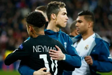 Neymar e Cristiano Ronaldo, em jogo da Champions League (Arroyo Moreno - Getty Images)