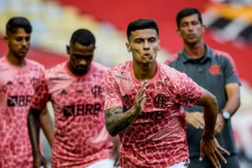 Richard Ríos em aquecimento no Flamengo (Marcelo Cortes/Flamengo)