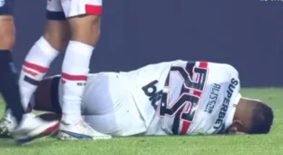 Alisson após lesão no tornozelo em partida entre SPFC X Grêmio (Créditos: Canal Premiere Globo)
