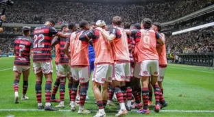 Jogadores do Flamengo comemoram após vitória (Sipa US/Alamy Live News)