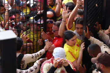 Torcedores tentam entrar no Hard Rock Stadium, palco da final da Copa América entre Argentina e Colômbia. (Créditos: Maddie Meyer/Getty Images)