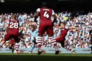 Jogadores do West Ham em ação contra o Manchester City (Naomi Baker/Getty Images)