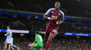 Jhon Duran comemorando gol pelo Aston Villa contra o Manchester City na Premier League. (Créditos: Michael Regan/Getty Images)