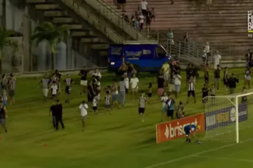 Um tumulto se formou nas arquibancadas do palco esportivo. Alguns torcedores caminharam para o gramado. O goleiro Dalton partiu para cima de invasores.