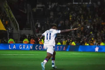 A torcida argentina testemunhou uma verdadeira pintura no primeiro minuto de jogo. Marinho cobrou uma falta sem ângulo para o Fortaleza, marcando um verdadeiro golaço no Gigante de Arroyito.