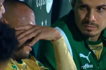 Mayke emocionado após lesão no jogo entre Palmeiras e Cuiabá (Transmissão Premiere)