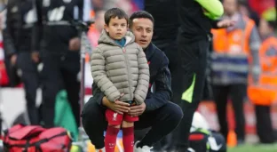 Thiago Alcântara com seu filho, Gabriel (PA Images / Alamy Stock Photo)