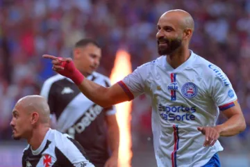 Thaciano comemora gol pelo Bahia (Walmir Cirne/AGIF (via AP)