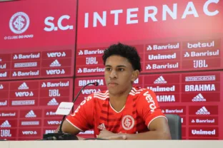Paulo Victor em coletiva no Colorado. (Foto Ricardo Duarte/Internacional)
