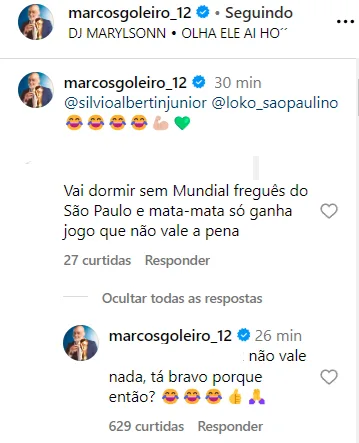 Como a postagem logo viralizou, Marcos fez questão de rebater um torcedor do São Paulo. Reagindo ao discurso de que o confronto “não vale nada”, o ídolo do Palmeiras questionou a postura de irritação do comentário. Logo depois, ao ser exaltado por outro são-paulino, o ex-goleiro rechaçou qualquer tipo de atitude para desrespeitar o Tricolor.