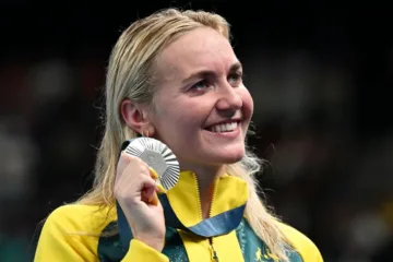 Ariarne Titmus com a medalha de Prata em Paris (Australian Associated Press/Alamy Live News)