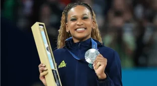Rebeca Andrade conquistou sua segunda medalha nos Jogos Olímpicos de Paris neste sábado (3). A ginasta brasileira foi prata na final do salto, sendo superada apenas pela norte-americana Simone Biles. O feito da atleta foi transmitido por Luís Roberto na Globo e por Luiz Carlos Júnior no SporTV.