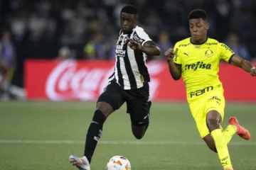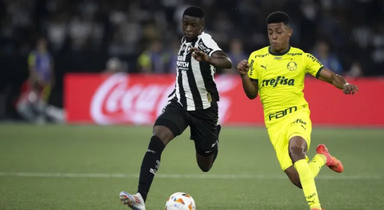 Luiz Henrique, do Botafogo, disputa a bola com Wanderlan, do Palmeiras (AGIF/Alamy Live News)