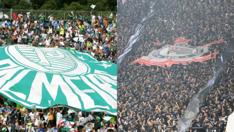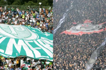 Torcedores de Palmeiras e Corinthians fazem festa nos estádios. Fotos: Divulgação Palmeiras e Corinthians
