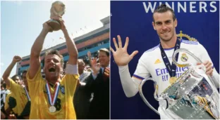 Dunga com a taça da Copa do Mundo e Bale com a taça da Champions League (dpa picture alliance / Alamy Stock Photo - Divulgação/Real Madrid)