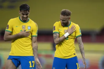 Neymar comemora gol pela seleção brasileira ao lado de Lucas Paquetá (Lucas Figueiredo / CBF)