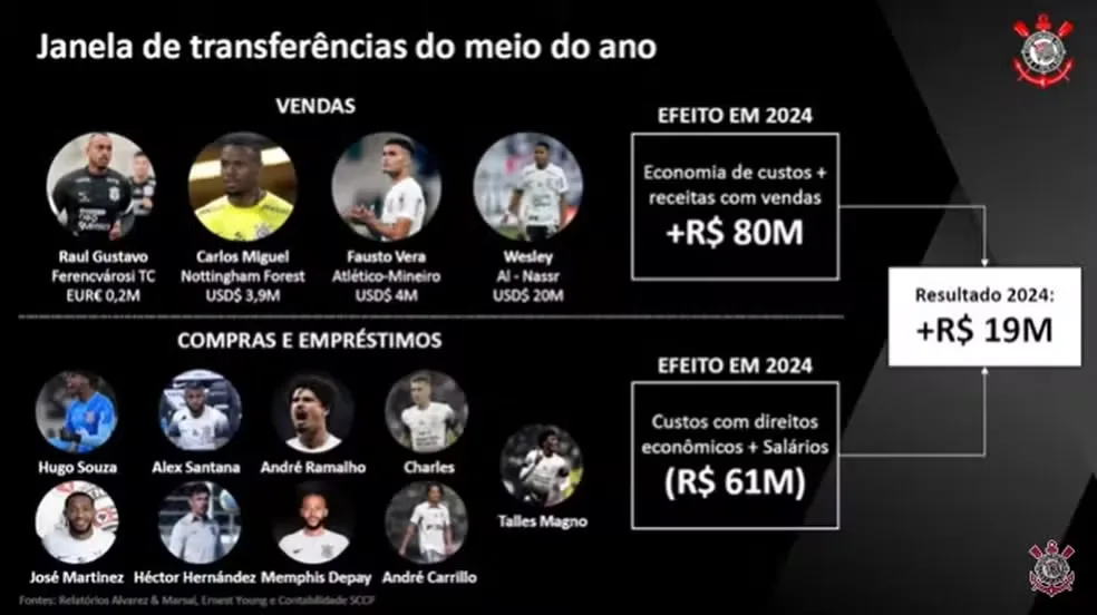 Confira abaixo quanto o Corinthians investiu no meio do ano em reforços no mercado da bola