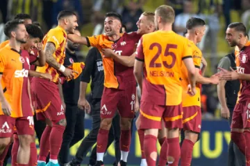 Jogadores do Galatasaray comemoram vitória no clássico contra o Fenerbahce (Associated Press / Alamy Stock Photo)