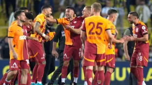 Jogadores do Galatasaray comemoram vitória no clássico contra o Fenerbahce (Associated Press / Alamy Stock Photo)