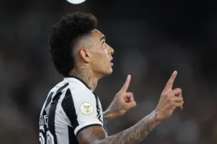 Igor Jesus, do Botafogo, comemora seu primeiro gol na partida do Brasileirão Série A 2024 contra o Fortaleza (Lucas Figueiredo/Getty Images)