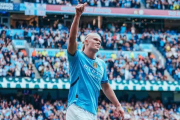 O craque Erling Haaland, do Manchester City, se igualou a Cristiano Ronaldo, do Al Nassr, ao marcar na vitória dos Citizens sobre o Arsenal por 2 a 1, no Etihad Stadium, neste final de semana. As duas equipes se enfrentaram pela Premier League.