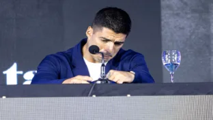 O craque Luis Suárez, do Inter Miami, anunciou a sua aposentadoria da seleção do Uruguai, nesta segunda-feira (02), no Estádio Centenário, em Montevidéu. O jogador não conteve a emoção ao responder perguntas em entrevista coletiva.