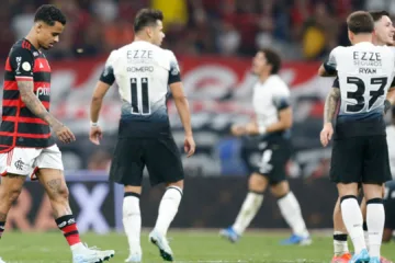 Jogadores de Corinthians e Flamengo após o jogo da 25ª rodada do Brasileirão Sèrie A. (Créditos: Miguel Schincariol/Getty Images)