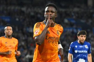 Vinícius Júnior comemora gol pelo Real Madrid (Associated Press / Alamy Stock Photo)