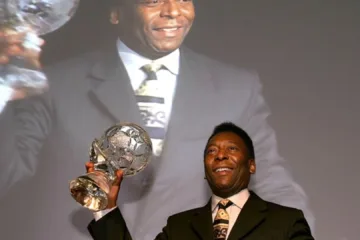 Pelé sorri ao receber o prêmio "Vida e Esporte Artemio Franchi 2006" em Siena, Itália, 2006. (AP/Fabio Muzzi)