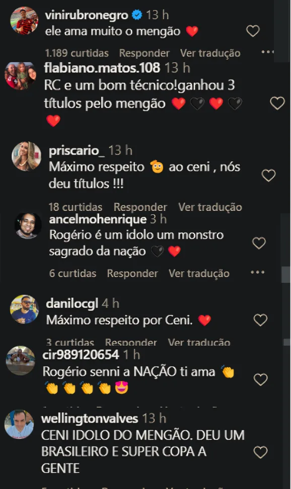 Nas redes sociais, torcedores do Flamengo demonstraram respeito e carinho pelo ex-goleiro. Apesar de uma passagem curta no clube carioca, Ceni conquistou três títulos, entre eles o Campeonato Brasileiro 2020.