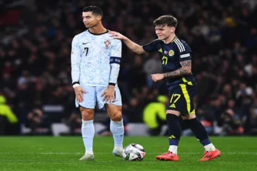 Cristiano Ronaldo, de Portugal, e Ben Doak, da Escócia (Euan Cherry/Getty Images)