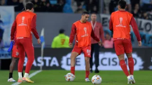 Christian em aquecimento antes de jogo do Athletico-PR contra o Racing na Argentina pelas quartas de final da Copa Sul-Americana 2024. (Créditos: Marcelo Endelli/Getty Images)