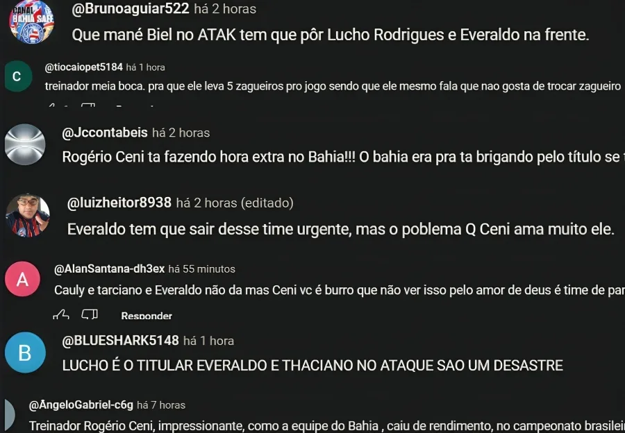 Rogério Ceni avaliou como positivo o desempenho do Bahia no empate com o Cruzeiro, em 1 a 1, no estádio do Mineirão, em Belo Horizonte, pela 30ª rodada do Brasileirão Betano. Para o próximo jogo, com o Vasco, o treinador deixou no ar uma possível titularidade de Biel, mas os torcedores cobram um espaço maior para Lucho Rodríguez.