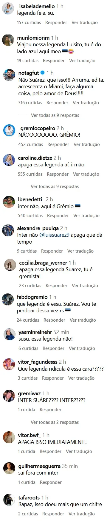 Veja os ‘protestos’ dos torcedores do Grêmio diante do post de Suárez