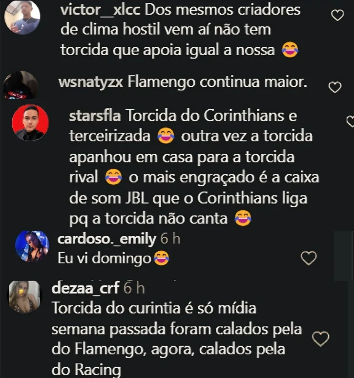 Nas redes sociais, torcedores do Flamengo ironizaram as declarações do camisa 1 do Corinthians. Alguns até relembraram a recente classificação para a final da Copa Betano do Brasil.