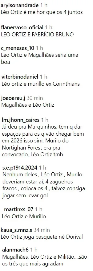 “Já deu pra Marquinhos, tem q dar espaços para os q vão chegar bem em 2026 isso sim, Murilo do Nortighan Forest era pra convocado, Léo Ortiz tmb”