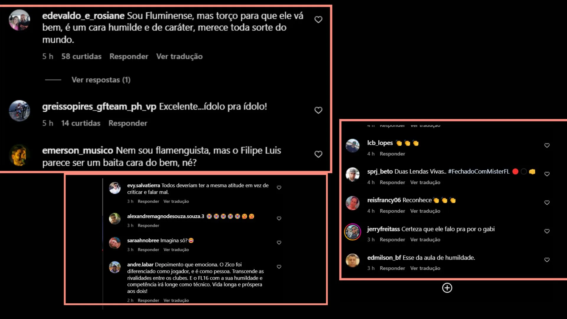 “Excelente…ídolo pra ídolo!”, disse um dos torcedores. “Sou Fluminense, mas torço para que ele vá bem, é um cara humilde e de caráter, merece toda sorte do mundo”, desejou outro internauta. “Deve ser um privilégio mesmo”, comentou mais um.