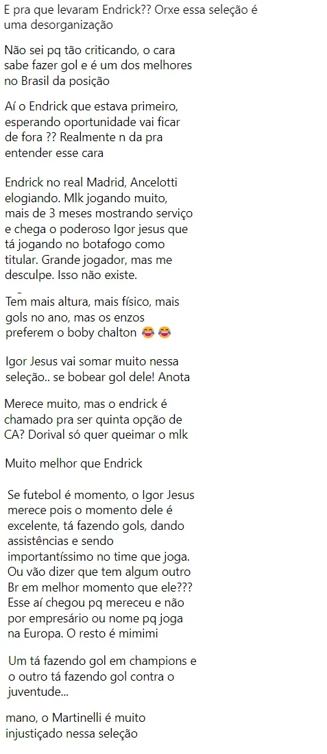 “E pra que levaram Endrick?? Orxe essa seleção é uma desorganização”