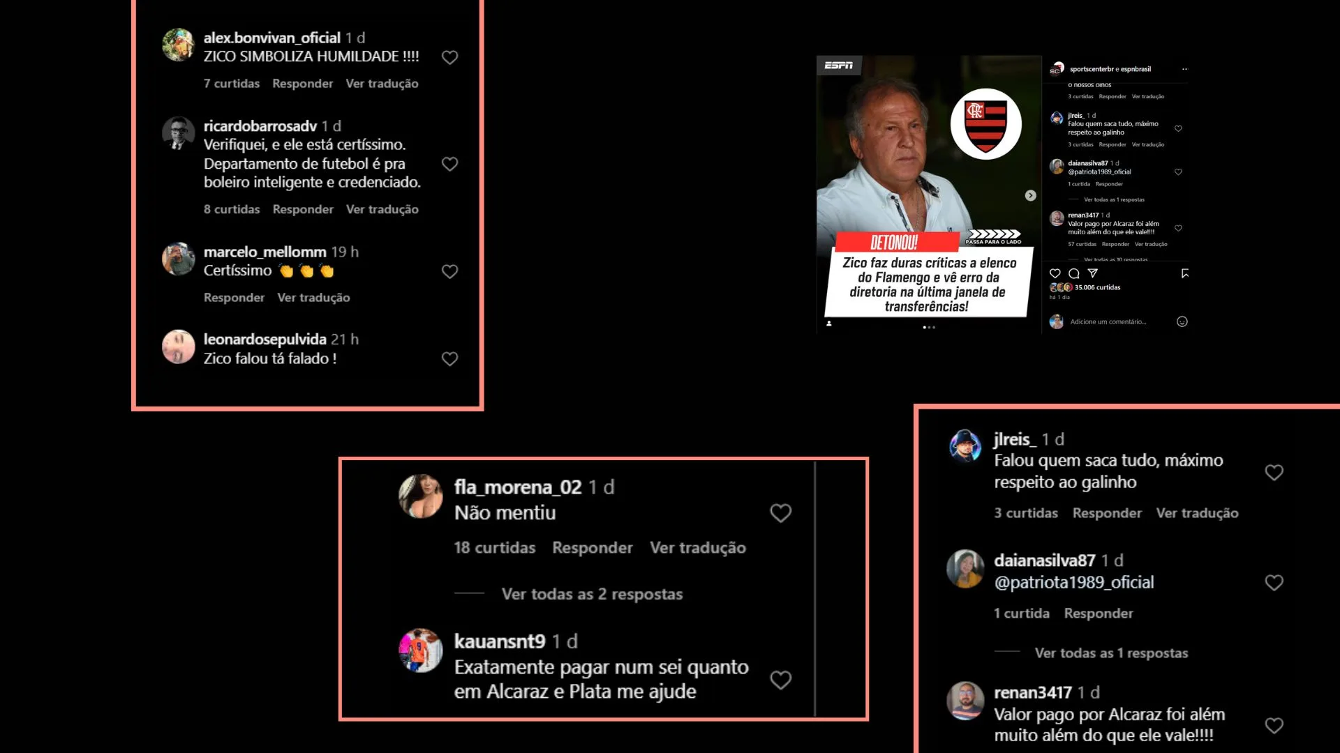 “Vira treinador aí Zico na real”, pediu mais um. “Não mentiu”, afirmou uma torcedora. “Verdade, jogadores caros e fracos essa que é a verdade!!”