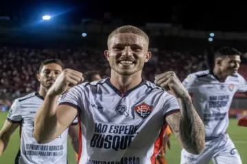 Jogadores do Vitória celebram o triunfo sobre o Fluminense (Reprodução - Twitter - Vitória)