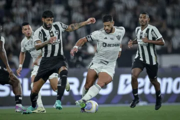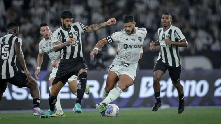 Hulk, do Atlético-MG, disputa bola com jogadores do Botafogo (Pedro Souza - Divulgação - Atlético)