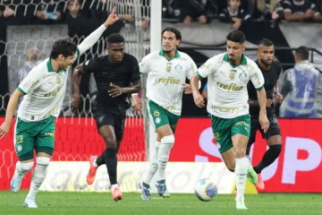 Jogadores do Palmeiras em ação durante clássico contra o Corinthians (Cesar Greco - Ag. Palmeiras - Divulgação)