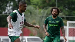 Douglas Costa e Marcelo, em treino do Fluminense (LUCAS MERÇON / FLUMINENSE F.C.)