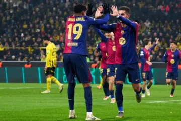 Lamine Yamal celebra gol anotado na Champions League (Divulgação - Barcelona)