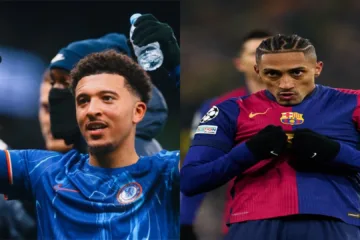 Jogadores do Chelsea e Barcelona (reprodução X oficial Chelsea / X oficial Barcelona)