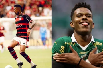 Bruno Henrique e Estevão, jogadores do Flamengo e Palmeiras (Adriano Fontes / Gilvan de Souza / CRF / Cesar Greco / Palmeiras)